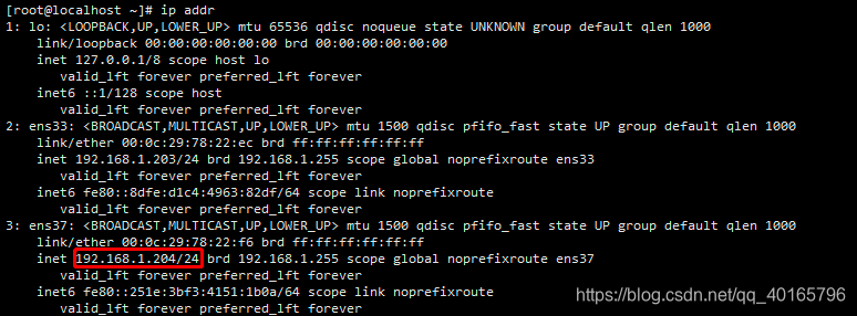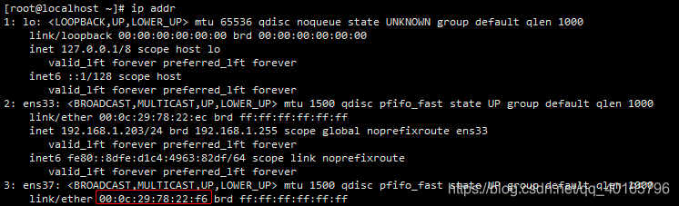 3、使用ip addr命令查看网卡信息,记下ens37网卡的MAC地址